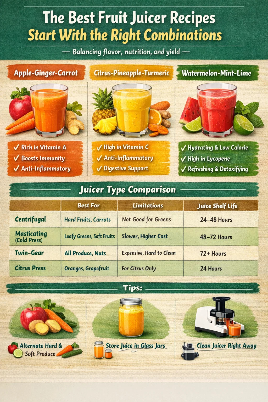 Nem todas as receitas de espremedores de frutas são igualmente adequadas para todos os tipos de espremedores. A máquina que você possui determina quais ingredientes você pode usar com eficácia, quanto suco você extrairá e por quanto tempo o suco permanecerá fresco após a extração. Compreender estas diferenças evita a frustração e o desperdício de produtos.