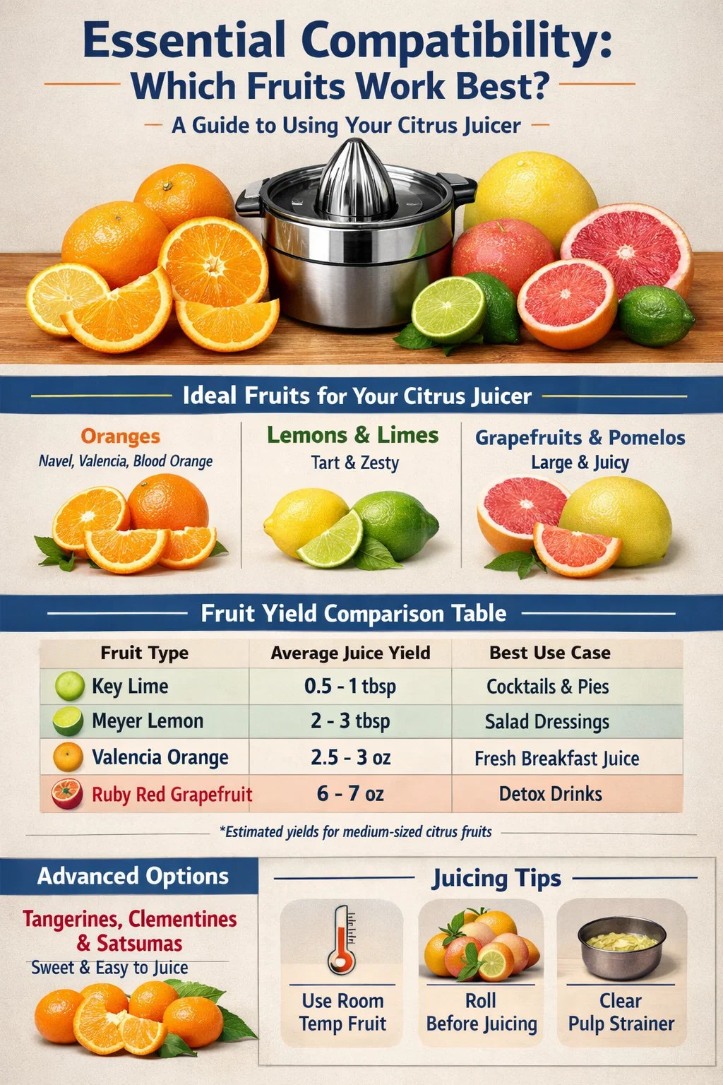 Você pode estar se perguntando por que não deveria usar apenas um extrator de suco de uso geral para essas frutas. A razão está na miolo e casca . Um espremedor geral exige que você descasque a fruta primeiro porque ele mói tudo. A casca dos cítricos contém óleos amargos que estragam o sabor. Um espremedor de frutas cítricas deixa a casca intacta, garantindo que apenas o suco interno doce seja coletado. Isso o torna a ferramenta mais especializada e eficaz para qualquer fruta da família da laranja e do limão.